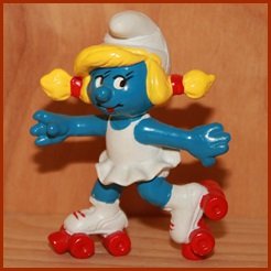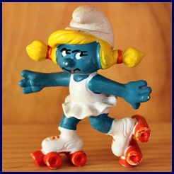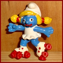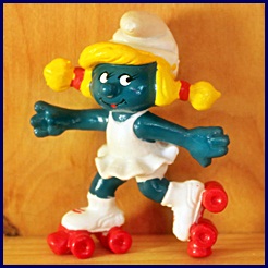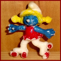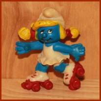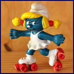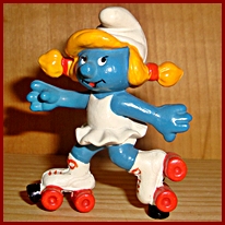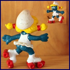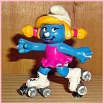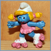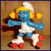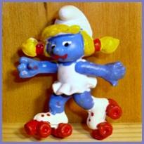 Peyo © (hand-etched) The rarest of the rollerskaters. It should always have the hand-etched Peyo marking on the right thigh. There are "variations" available that show clear lines for the undies and/or no Peyo marking on the thighs. to paint the undies, these should not be confused as as an orginal Schleich rollerskate variation. 99% of those are painted over. |