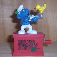 | box is more than likely glued to the wrong music box, as the music box usually has a different smurf on it |