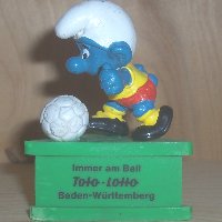 | The Tennis smurfette on the sockel is more than likely glued to the wrong sockel, as this sockel usually has the congratulation smurf on it. |