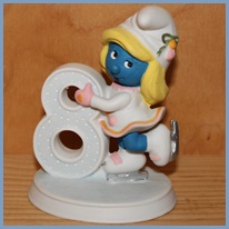 | Smurfette Birthday Ceramics Markings: © Peyo 1982 Wallace Berrie & Company, Inc Van Nuys, CA Made in Taiwan, R.O.C. |