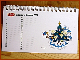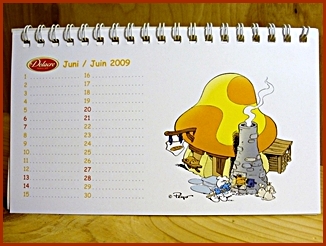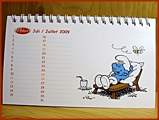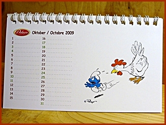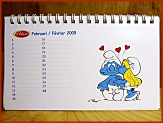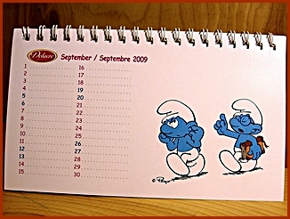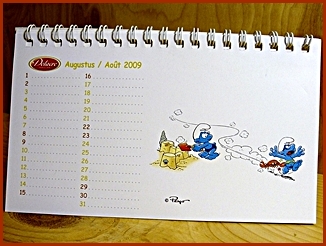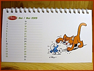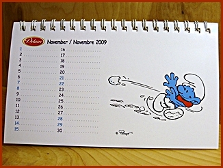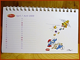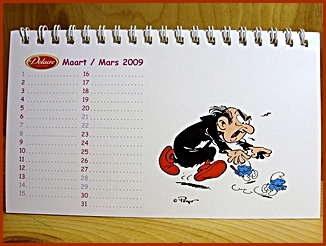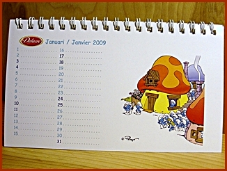| 2009 Belgium Desk Calendar They were included in the Belgium Delacre Cookie Boxes as a gift Markings ©Peyo 2008, Licensed through IMPS(Brussels) |