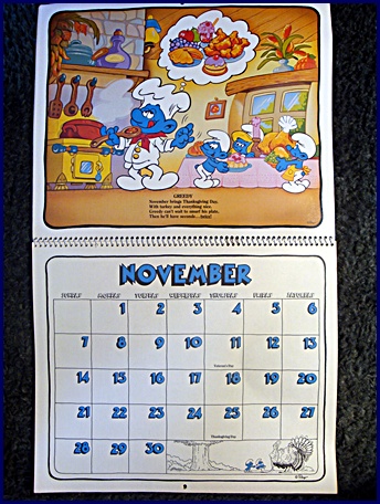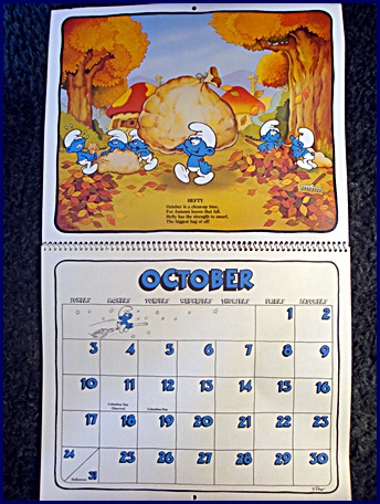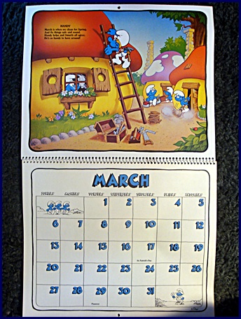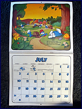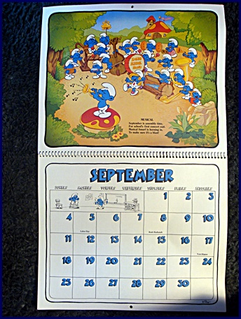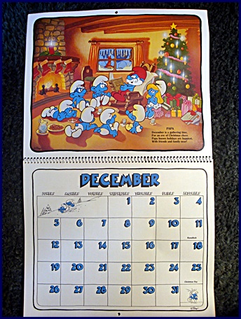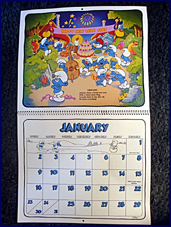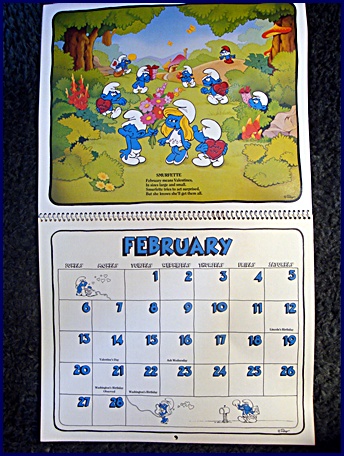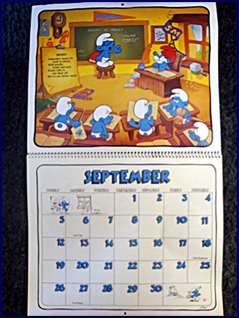 | 1982/83 16 Month Character Calendar Markings © Wallace Berrie & Co, Inc, Van Nuys, California 91406 Printed in U.S.A. ©Peyo |