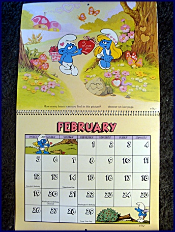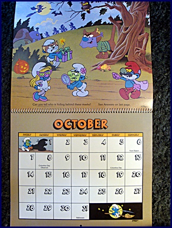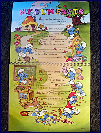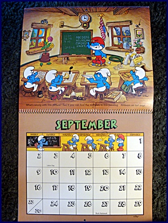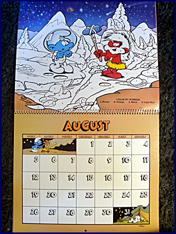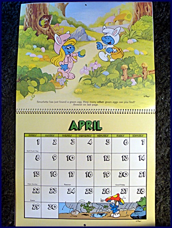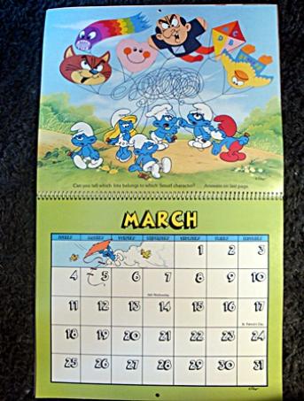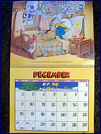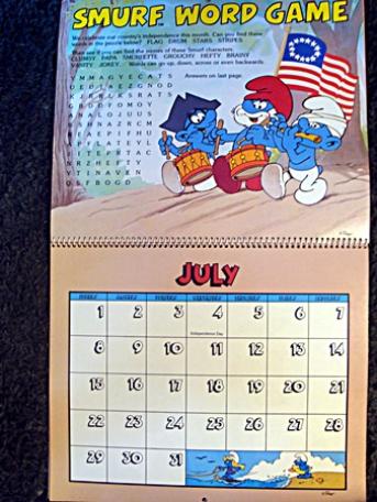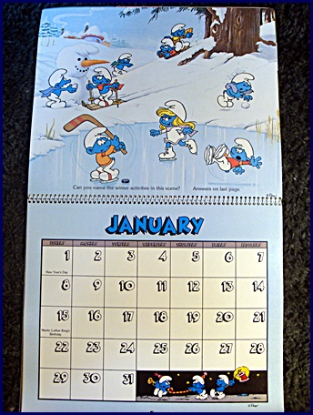 | 1984 Activity Calendar Markings ©Peyo © 1983 Wallace Berrie & Co, Inc, Van Nuys, California 91406 Printed in U.S.A. ©Peyo |