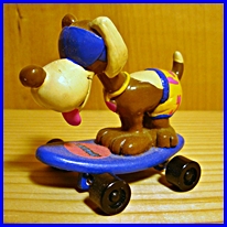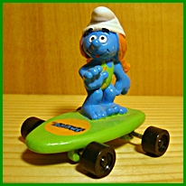 | Hardee's released some smurfs on surfboard. They are made of hard pvc and easy to recognize. There are six in the series. The markings are Peyo, Applause, China |